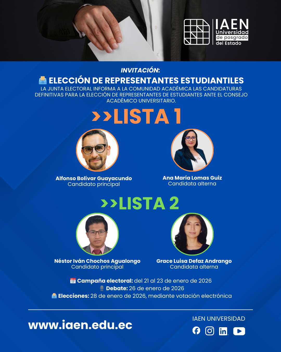 La Junta Electoral informa a la comunidad académica las candidaturas definitivas para la elección de representantes estudiantiles ante el Consejo Académico Universitario.
