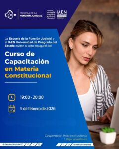 La Escuela de la Función Judicial y el IAEN – Universidad de Posgrado del Estado te invitan al acto inaugural de este importante espacio de formación jurídica, enfocado en el fortalecimiento del conocimiento constitucional y el rigor académico.